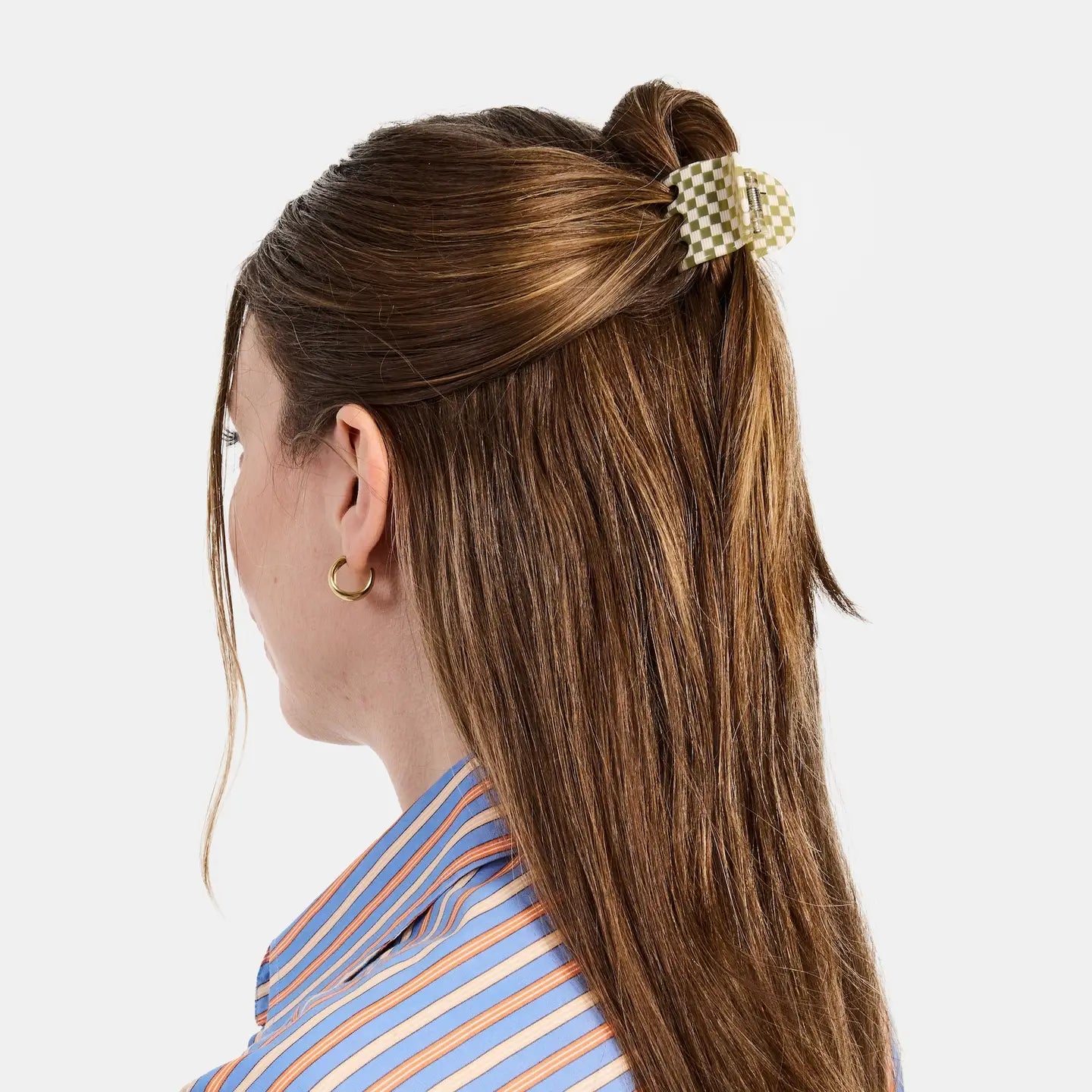 This medium sized claw is uniquely perfect for curly, textured, medium to thick hair. Large teeth give a gentle but firm hold, without crushing curls.