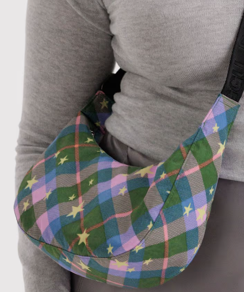 Baggu Sm. Crescent Bag - Green Star Plaid