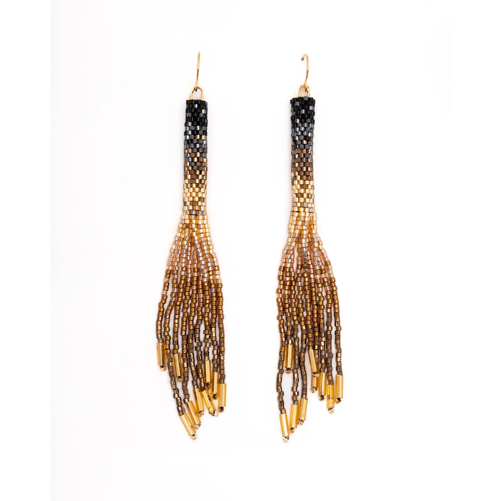 Handwoven Beaded Tassel Earrings, Black