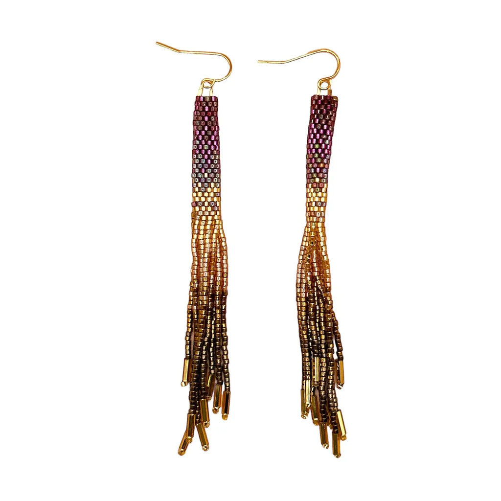 Handwoven Beaded Twist Earrings, Plum/Pink