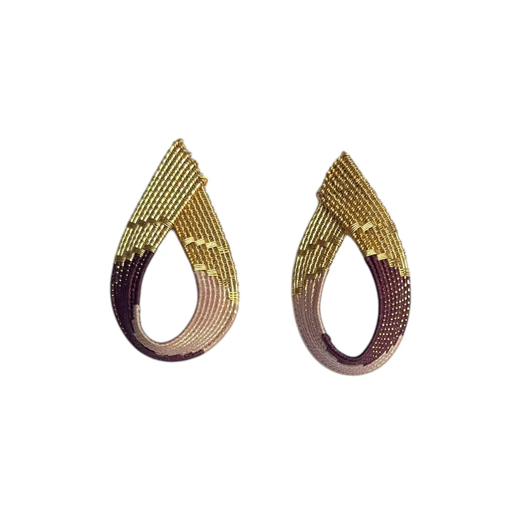 Handwoven Wire & Cord Lines Earrings, Ochre