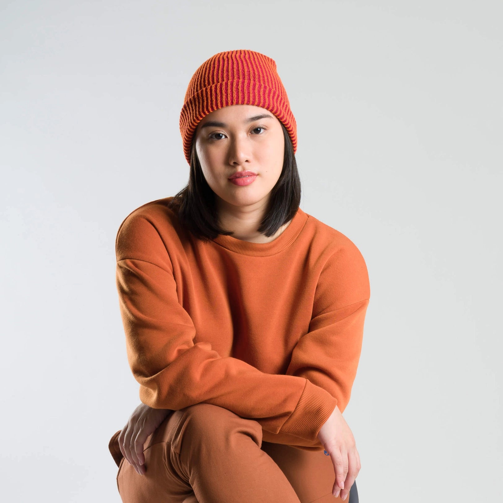 The bestselling two-tone colorful rib knitted beanie. Soft and lightweight for year-round wear. Cozy, hypoallergenic yarn and comfy, seamless construction. Can be worn as a cuffed hat or slouchy beanie. Stretches for a perfect, flattering fit on heads of all sizes and shapes. Unisex, one size.