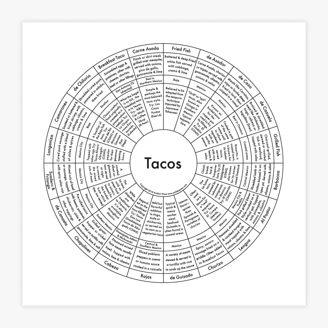 Taco Chart Print, 8"x 8"