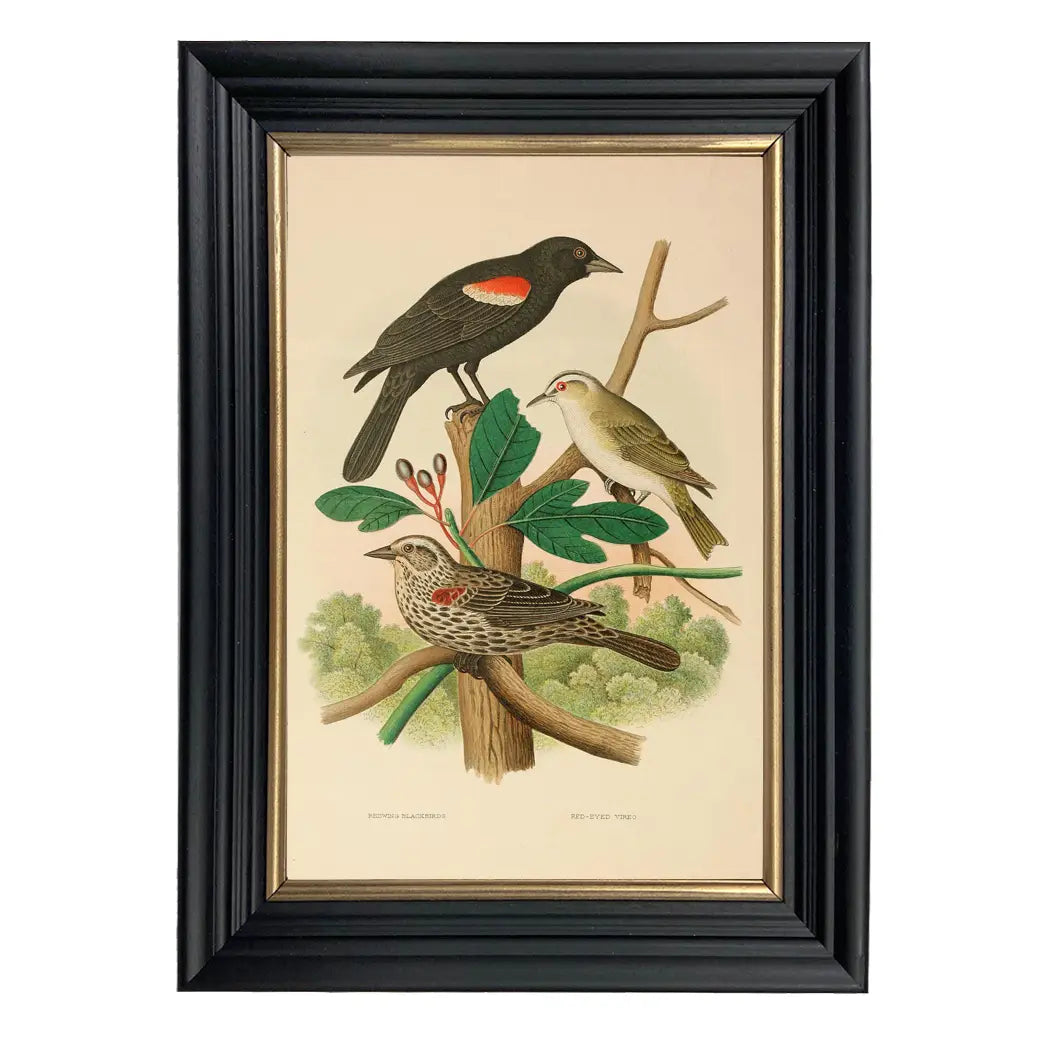 Vintage Redwing Blackbird & Red-Eyed Vireo Illustration, 6.75"x 10"