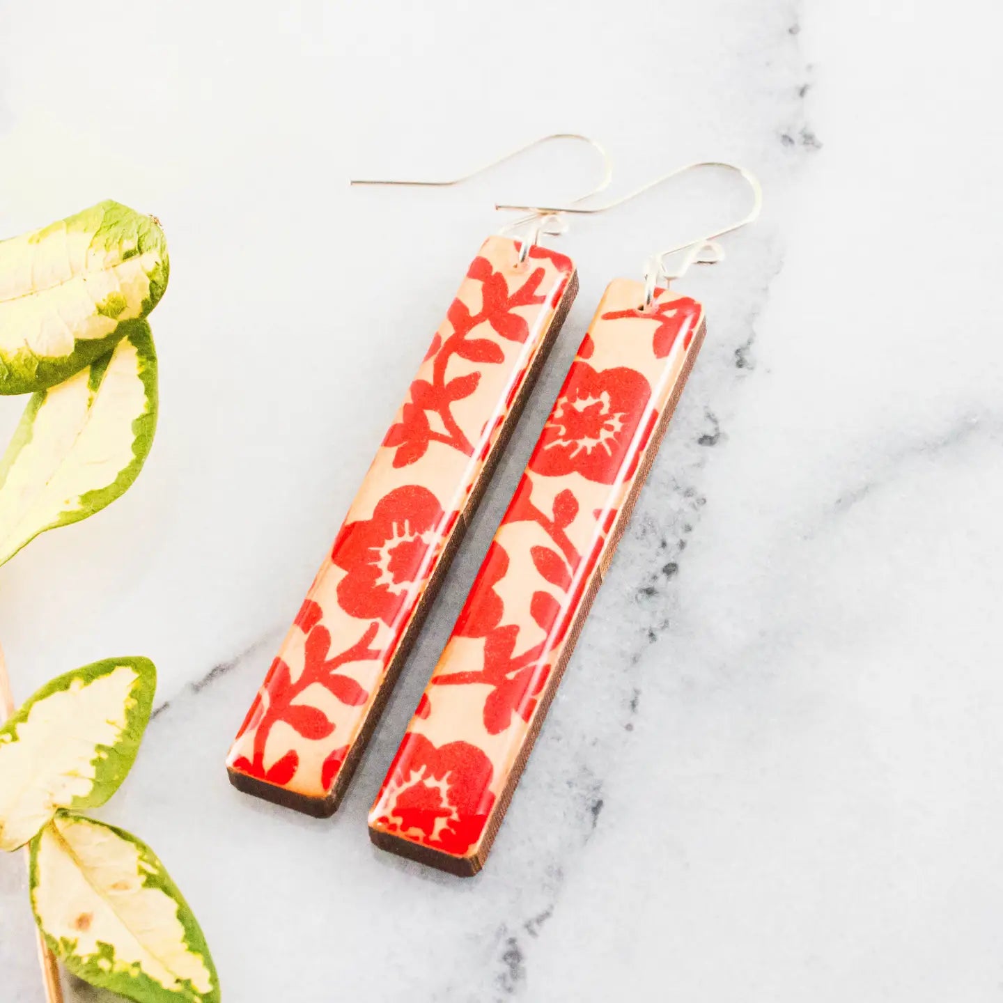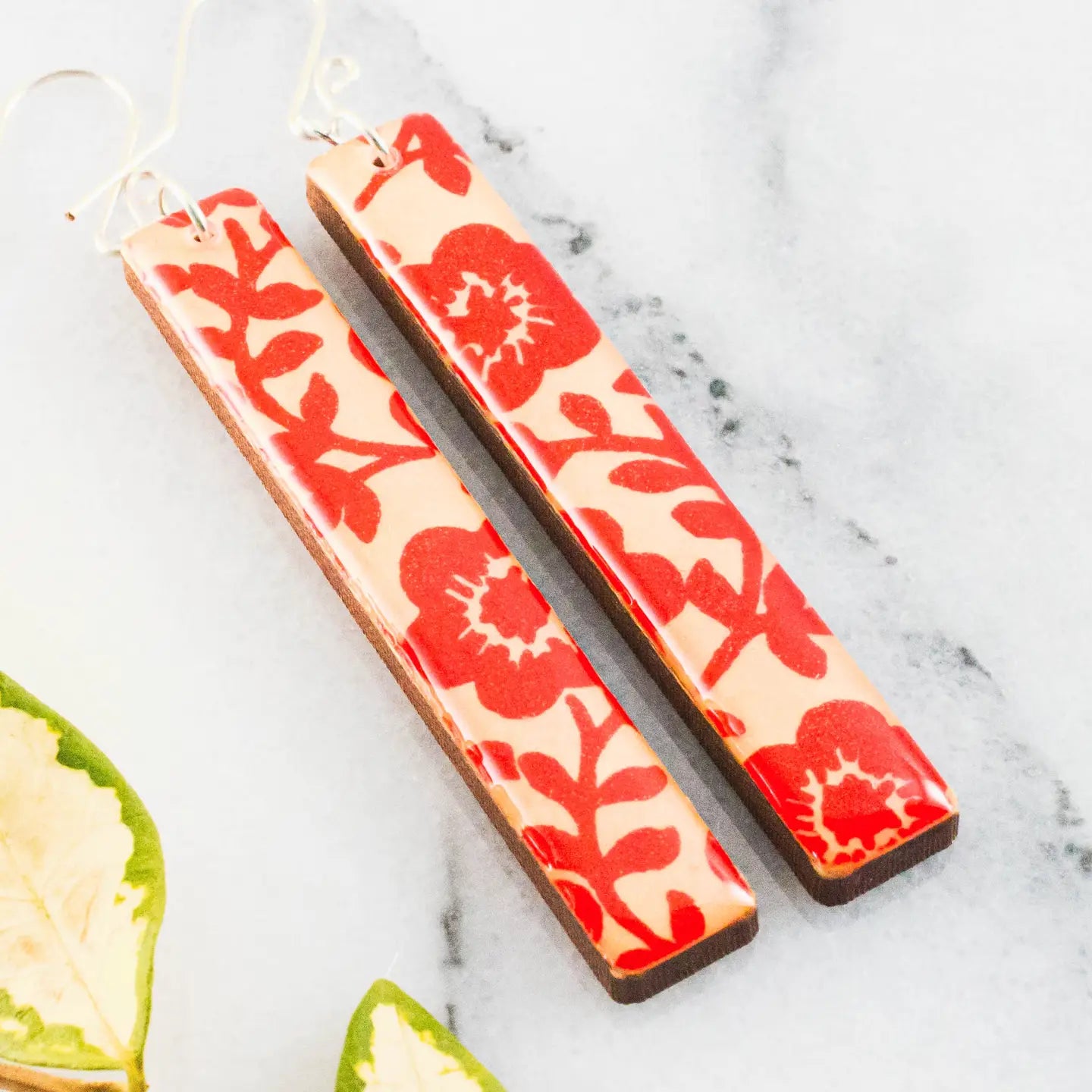 Graphic Red Floral Earrings