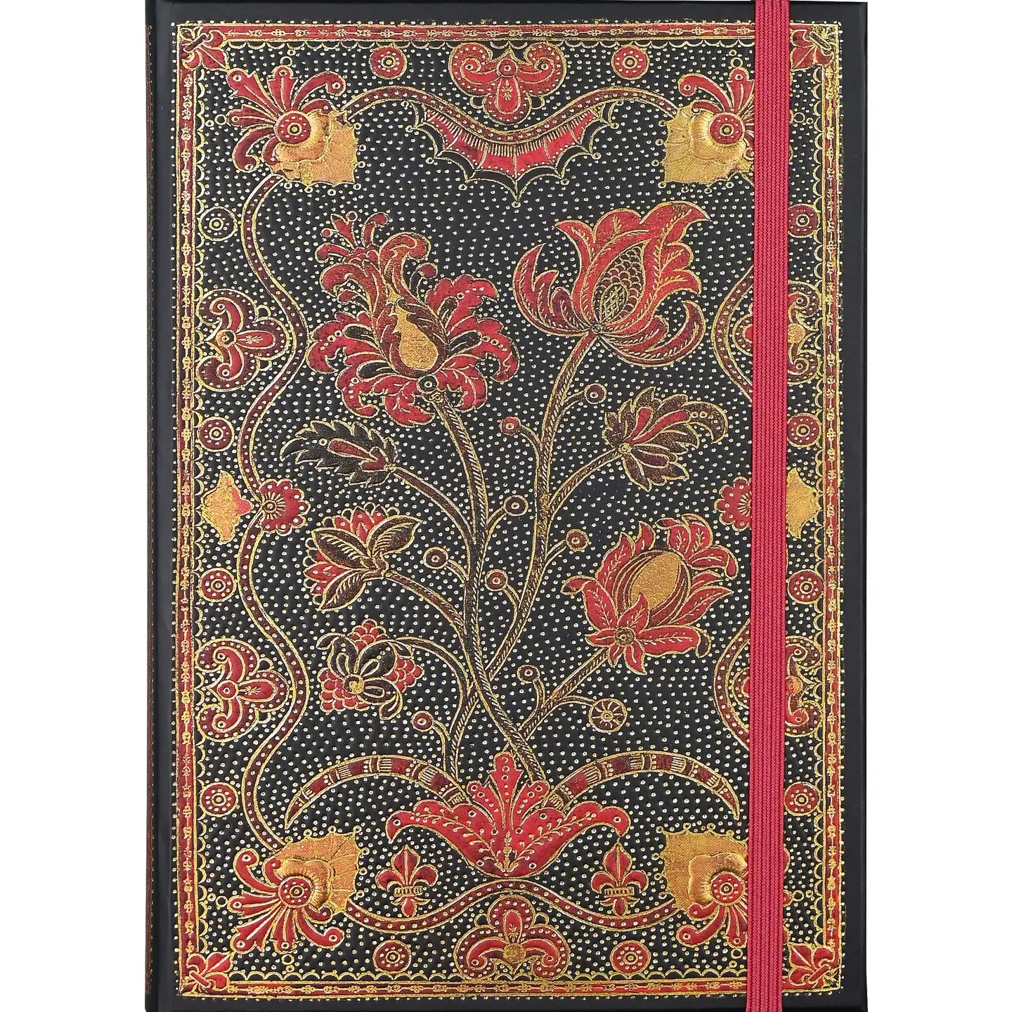 Elegant journal reproduces a binding created by Pierre-Paul Dubuisson for a Royal Almanac of 1760; it was widely considered the most beautiful French Mosaic binding made in the time of Louis XV. Inside, you'll find ample space for personal reflection, sketching, or recording favorite quotations or poems. Premium 120 gsm paper welcomes pen or pencil. Light gray lines gently guide your writing. Paper is acid-free and of archival quality. Gilded-gold edging catches the light as you turn each page. Tuck notes and keepsakes within the back cover pocket. Use the elastic closure to secure your journal. Durable hardcover binding with square corners. Convenient small-format size, 5'' wide x 7'' high, slips effortlessly into most bags and backpacks. 160 pages to capture your creative journey!