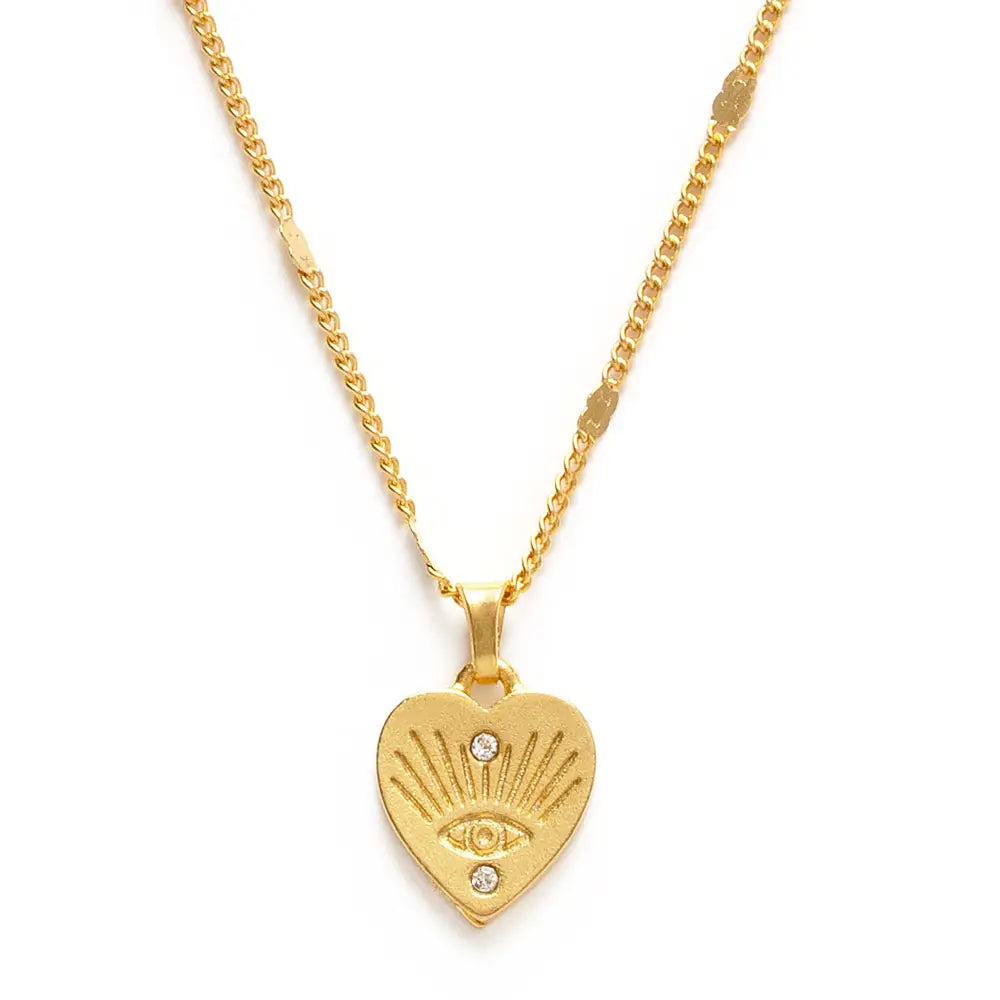 The symbol of a heart with an eye means love and protection for the one who wears it. These a unique Valentine's gift! Made of 14k gold plated brass with Czech crystal. 18" chain is coated to prevent tarnish. Designed and assembled in our Sonoma California studio.
