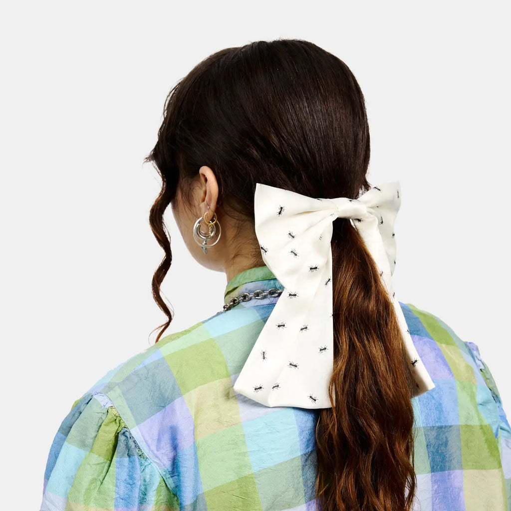 Made from 100% mulberry silk, this large bow barrette features a french barrette clip. Perfect for all hair types and textures.