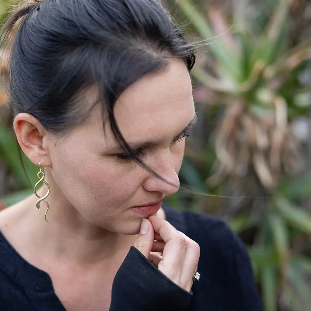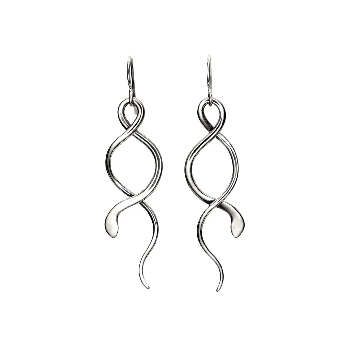 Gorgeous spiraling snake earrings with a smooth polished finish. - Earrings measure 5/8” wide x 2 1/2” high- Sterling silver ear wires