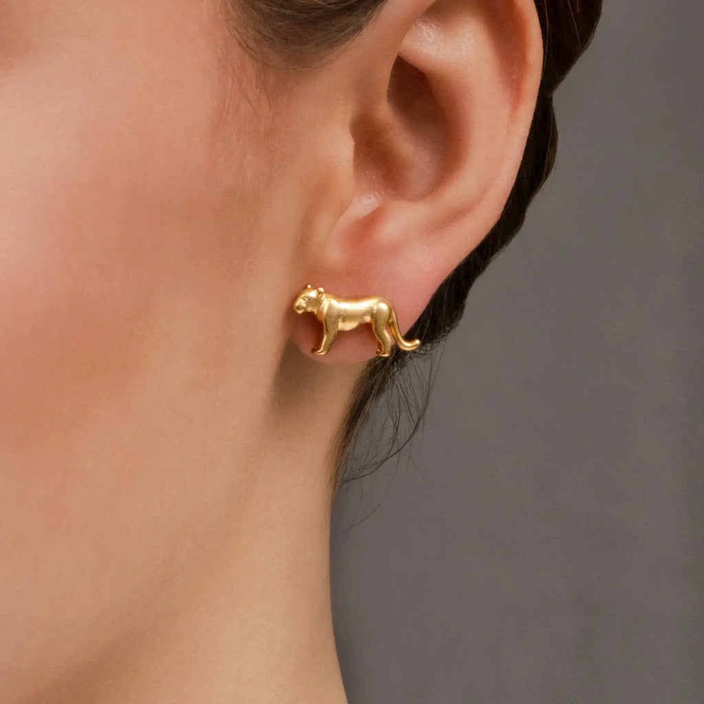 Bold yet minimal, these 24K gold-plated puma earrings embody strength and grace with their sleek silhouette and polished finish. These add subtle charm to any look. These are handmade in Colombia.