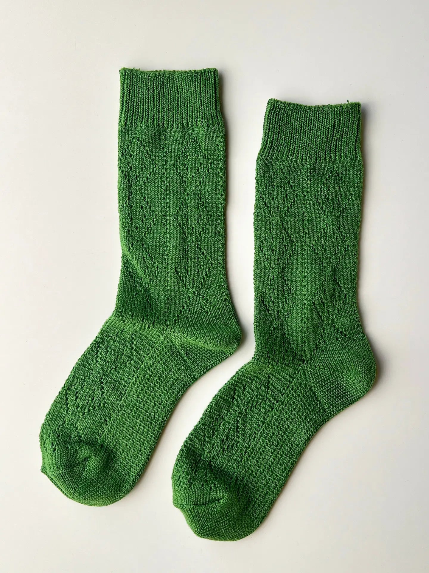 A refreshing take on pointelle. Delicate in detail, the Modal Eyelet Sock echoes the look of our Pointelle Cashmere with a similar knit pattern, while feeling closer in weight to the Trouser Sock. Soft with a silky-smooth hand, it’s the perfect pair for lighter seasons—made to wear with sandals and flats.