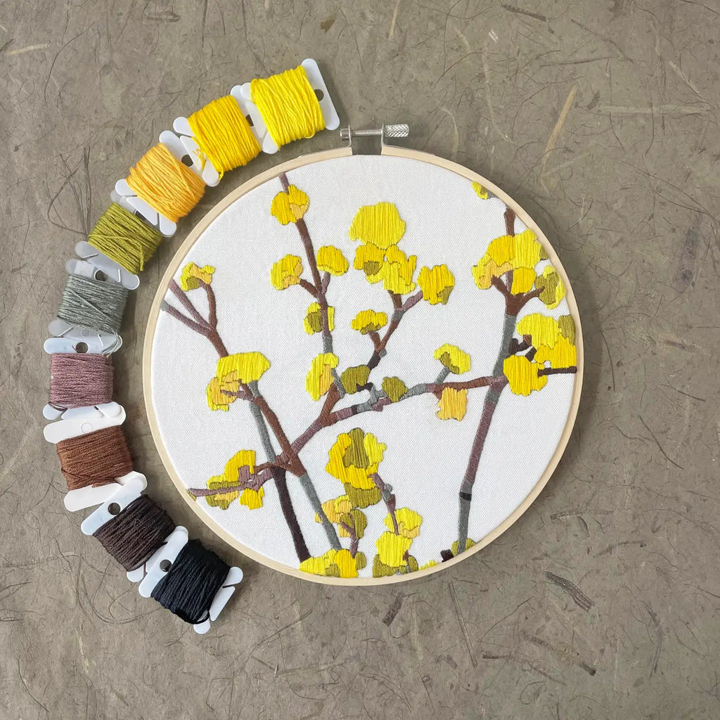 DIY Embroidery Kit, Cornelian Cherry Dogwood 8"