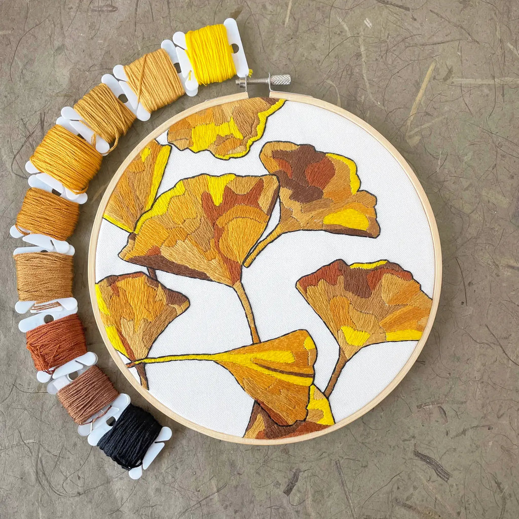 DIY Embroidery Kit, Ginkgo Leaves 8"
