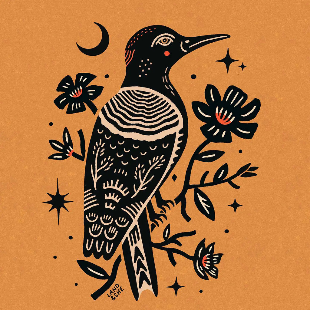 Woodpecker & Magnolia Art Print, 8"x 10"