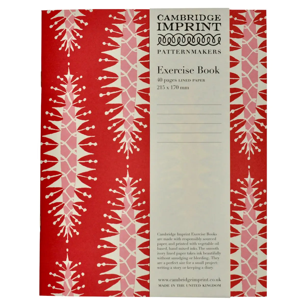 Cambridge Imprint Slim Exercise Books are modelled on old-fashioned school exercise books. They have covers of heavy, 170 gsm patterned paper, without any text or logo, and inside there are forty pages of lined 90gsm ivory paper.