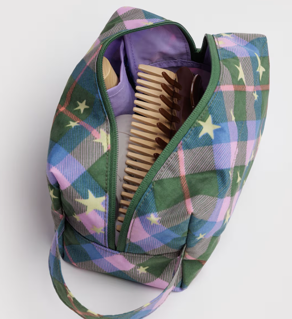 Baggu Dopp Kit - Green Star Plaid is backordered and will ship as soon as it is back in stock.