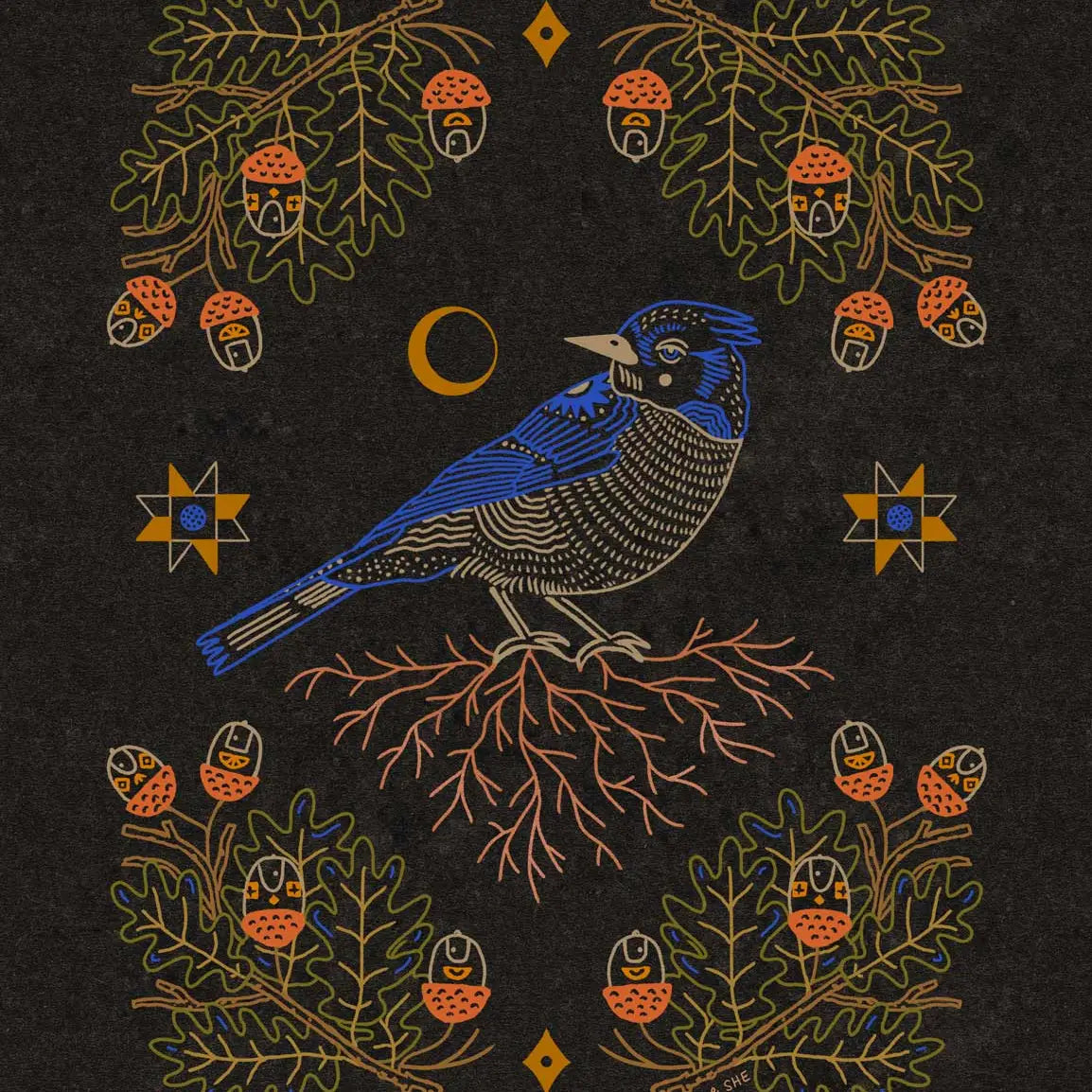 Blue Jay and the Acorns Art Print, 11"x 14"
