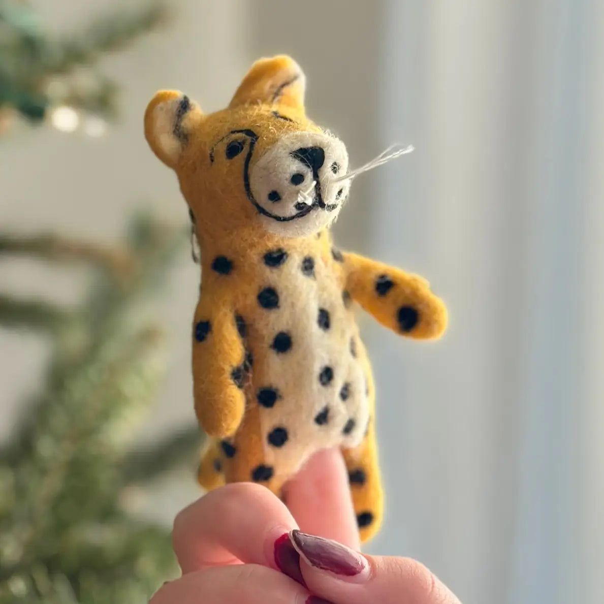Our lovely cheetah finger puppet is handmade in Nepal of 100% wool. It's needle felted and is 3D designed. It looks great from any angle. Perfect for storytelling prop!