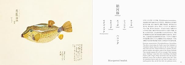 This third volume following Flowers of Edo and Birds of Edo turns its focus onto fishes. Mōri Baien was a natural history painter considered to be representative of the Edo period. This book features illustrations of 94 species created by Mōri Baien carefully selected from Baien-Gyofu (Baien Atlas of Fishes) and Baien-Gyohinzusei (Baien Pictorial Encyclopedia of Fishes), explained in bilingual Japanese-English text with information about each fish, such as the origin of its Japanese name, classification, scientific name, etc. In addition, cultural information such as what each fish was used for during the Edo period, the folklore surrounding them, and more are also introduced. This book deciphers one aspect of the profound story of Japanese people living in a seafaring country and fishes.