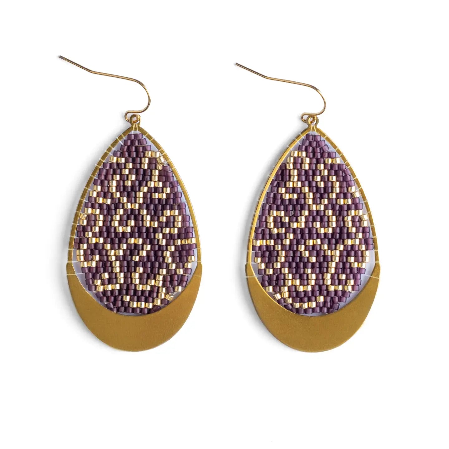 Gilded Beaded Tear Drop Earrings, Eggplant